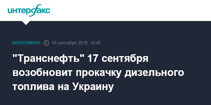 "Транснефть" 17 сентября возобновит прокачку дизельного топлива на Украину