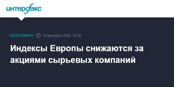 Москва. 19 декабря. INTERFAX.RU - Европейские фондовые индексы снижаются в пятницу вслед за акциями сырьевых компаний, сообщает агентство Bloomberg.