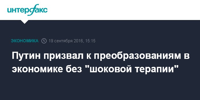"При этом, безусловно, ни в коем случае нельзя допускать перекладывания на плечи людей всей нагрузки в ходе этих преобразований и нужно избавиться даже от намека какой бы то ни было "шоковой терапии", - подчеркнул глава государства. По его словам, "нужно учитывать не среднестатистическое, а реальное положение российских семей и уровень их доходов".