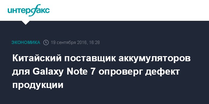 Москва. 19 сентября. INTERFAX.RU - Проблемы со смартфонами Galaxy Note 7, выпущенных южнокорейской Samsung Electronic для китайского рынка, не связаны с аккумуляторами, утверждает компания Amperex Technology, основной поставщик батарей для Galaxy Note 7 в Китае.