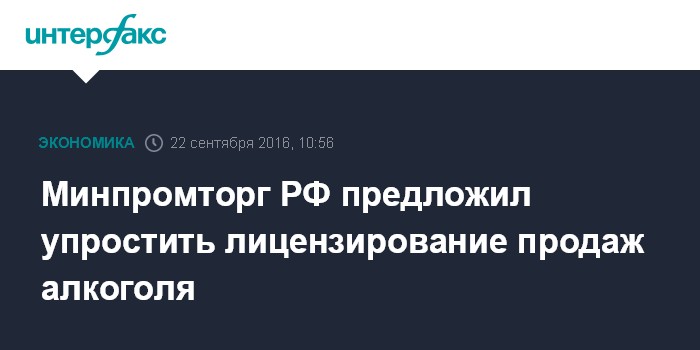 Москва. 22 сентября. INTERFAX.RU - Минпромторг РФ предлагает упростить лицензирование продаж алкоголя для ритейла и установить дифференцированную госпошлину за лицензирование.