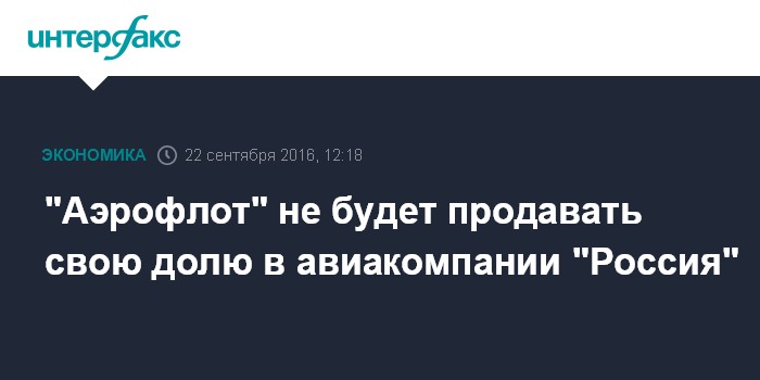 Москва. 22 сентября. INTERFAX.RU - Вопрос продажи доли "Аэрофлота" в авиакомпании "Россия" не стоит на повестке дня, сообщил "Интерфаксу" представитель перевозчика в четверг.