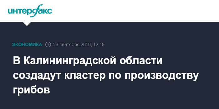 Москва. 23 сентября. INTERFAX.RU - Власти Калининградской области намерены создать и развивать кластер по производству грибов в Багратионовском районе Калининградской области, сообщает пресс-служба главы региона.