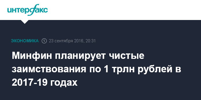 Минфин планирует чистые заимствования по 1 трлн рублей в 2017-19 годах