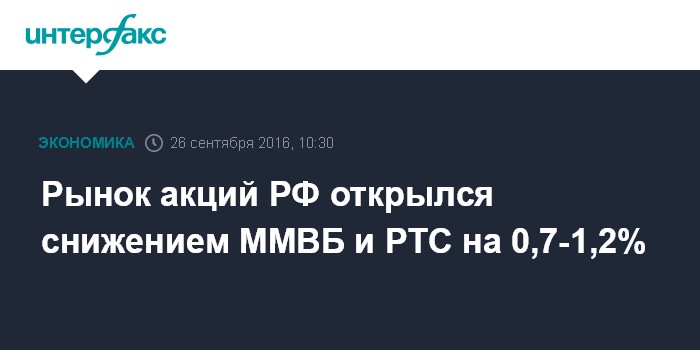 Рынок акций РФ открылся снижением ММВБ и РТС на 0,7-1,2%
