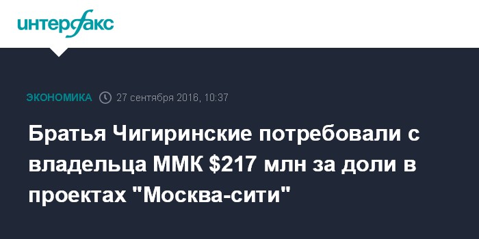 Братья Чигиринские потребовали с владельца ММК $217 млн за доли в проектах "Москва-сити"