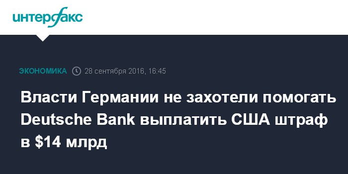 Власти Германии не захотели помогать Deutsche Bank выплатить США штраф в $14 млрд