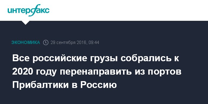 Москва. 29 сентября. INTERFAX.RU - Все российские грузы, которые в настоящее время переваливаются в портах Прибалтики, к 2020 году необходимо переориентировать на порты РФ.
