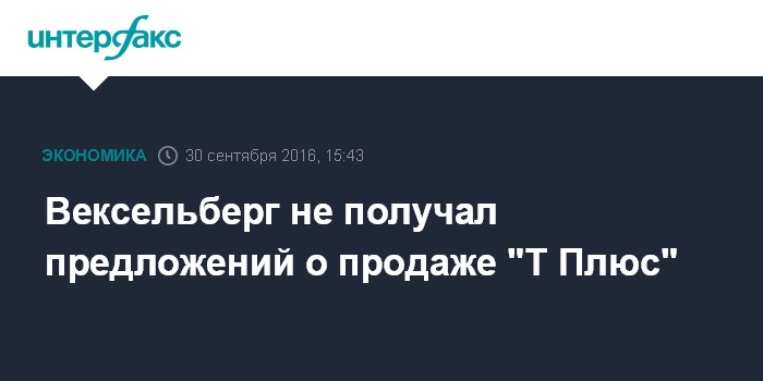 Москва. 30 сентября. INTERFAX.RU - Владелец группы "Ренова" Виктор Вексельберг не получал предложений о продаже энергокомпании "Т Плюс", топ-менеджерам которой предъявлены обвинения следственными органами.