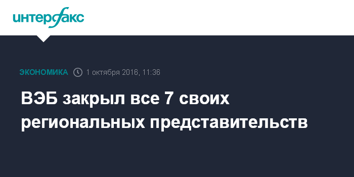 ВЭБ закрыл все 7 своих региональных представительств