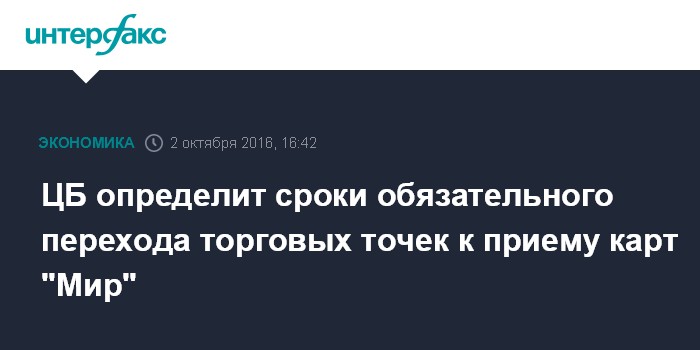 ЦБ определит сроки обязательного перехода торговых точек к приему карт "Мир"