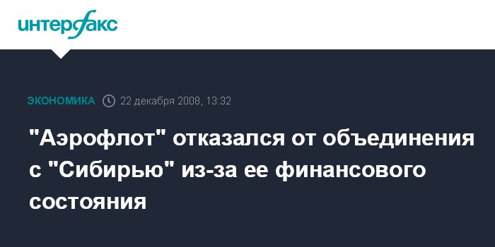 "Аэрофлот" отказался от объединения с "Сибирью" из-за ее финансового состояния