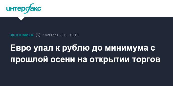 В ходе торгов евро отступал до 69,055 рубля за 1 евро, это минимум курса единой европейской валюты к рублю с ноября 2015 года. Евро упал к доллару до $1,11, минимума более чем за месяц. Как пишет The Wall Street Journal, доллар США дорожает по отношению к евро и другим валютам пятую сессию подряд из-за усилившихся ожиданий повышения процентных ставок Федеральной резервной системой (ФРС) до конца 2016 года.