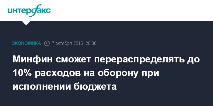 Минфин сможет перераспределять до 10% расходов на оборону при исполнении бюджета