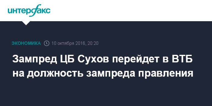 Зампред ЦБ Сухов перейдет в ВТБ на должность зампреда правления