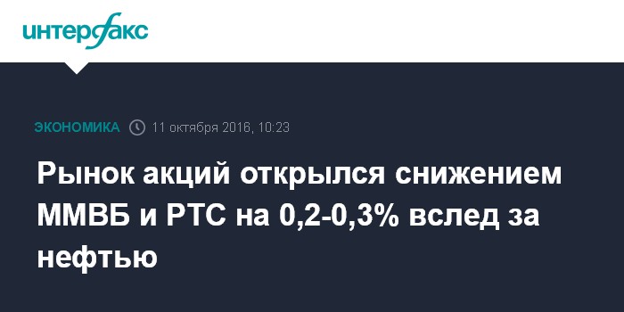 Рынок акций открылся снижением ММВБ и РТС на 0,2-0,3% вслед за нефтью