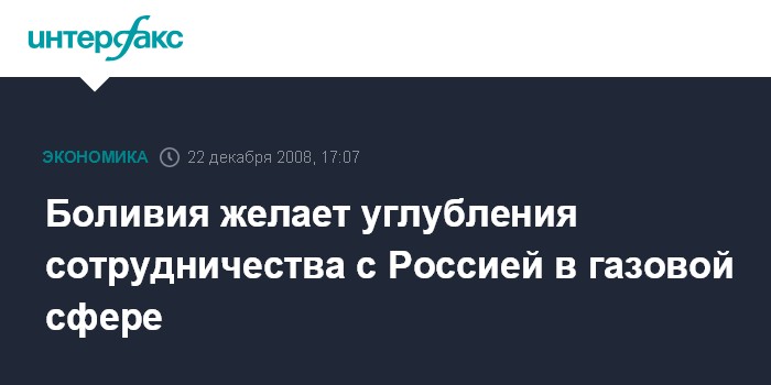 Москва. 22 декабря. INTERFAX.RU - Боливия хотела бы углублять уровень существующего сотрудничества с Россией в газовой сфере, сообщил в интервью корреспонденту "Интерфакса" министр энергетики и топливных ресурсов Боливии Сауль Авалос.