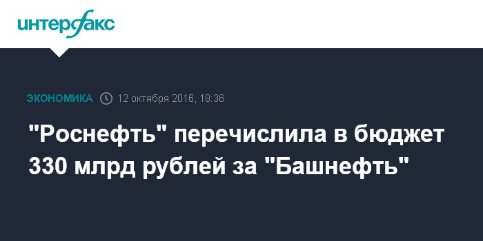 "Роснефть" перечислила в бюджет 330 млрд рублей за "Башнефть"