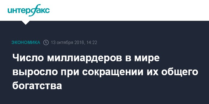 Число миллиардеров в мире выросло при сокращении их общего богатства