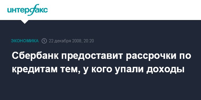 Кроме того, по словам Грефа, Сбербанк принял решение предоставлять отсрочки и рассрочки по кредитам, не связанным с ипотекой, на срок от полугода до года гражданам, которые столкнулись с существенным падением доходов.
