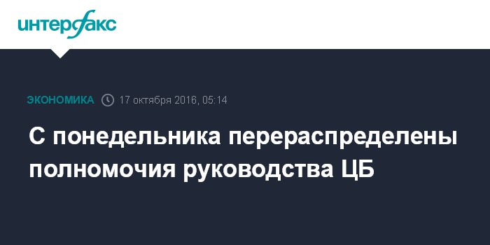 Москва. 17 октября. INTERFAX.RU - Председатель ЦБ РФ Эльвира Набиуллина с 17 октября лично курирует денежно-кредитную политику. О запланированных изменениях 3 октября сообщили в Банке России.