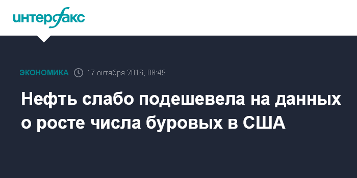 Москва. 17 октября. INTERFAX.RU - Цены на нефть продолжают слабо снижаться в понедельник на данных об очередном росте числа буровых в США, а также на фоне укрепления до 7-месячного максимума курса доллара к корзине основных мировых валют.