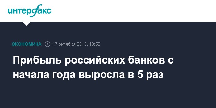 Москва. 17 октября. INTERFAX.RU - Российские банки в январе-сентябре увеличили прибыль в 5 раз по сравнению с аналогичным периодом прошлого года, до 635 млрд рублей, говорится в материалах ЦБ.