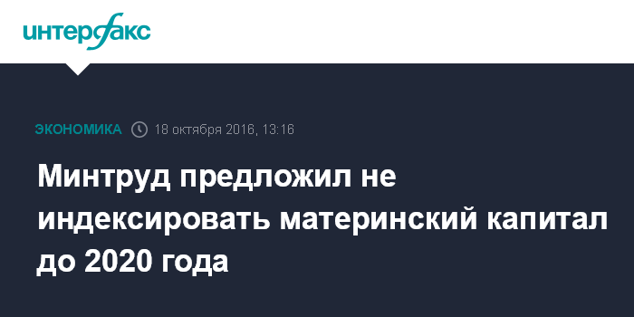Москва. 18 октября. INTERFAX.RU - Минтруд России подготовил законопроект, который предлагает заморозить ежегодную индексацию материнского капитала до 2020 года.