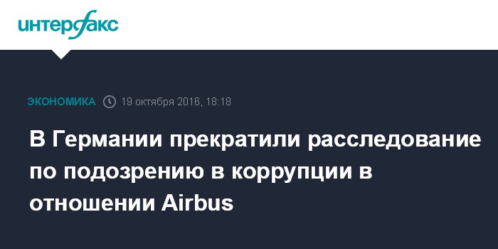 Москва. 19 октября. INTERFAX.RU - Прокуратура Мюнхена прекратила расследование в отношении Airbus по подозрению в мошенничестве и коррупции, передает Deutsche Welle.
