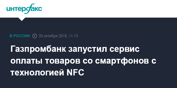 20 октября. INTERFAX.RU - Газпромбанк (ГПБ) запустил сервис оплаты товаров и услуг с использованием технологии Near Field Communication (NFC), говорится в сообщении банка.