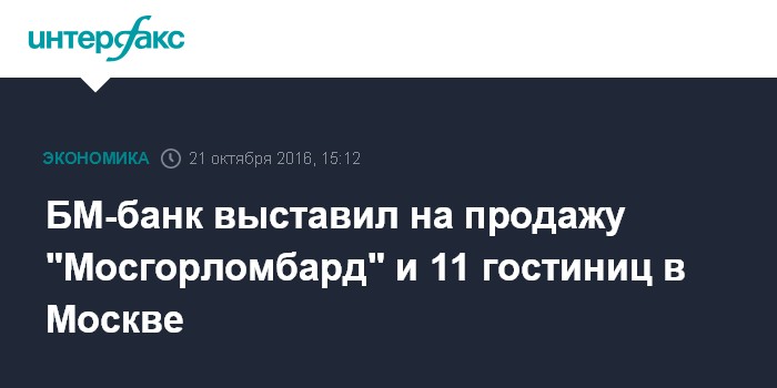 БМ-банк выставил на продажу "Мосгорломбард" и 11 гостиниц в Москве
