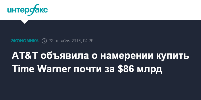 AT&T объявила о намерении купить Time Warner почти за $86 млрд