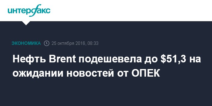 Нефть Brent подешевела до $51,3 на ожидании новостей от ОПЕК