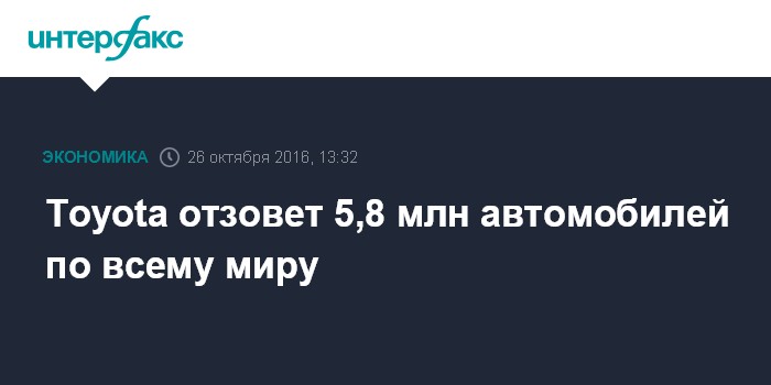 Toyota отзовет 5,8 млн автомобилей по всему миру