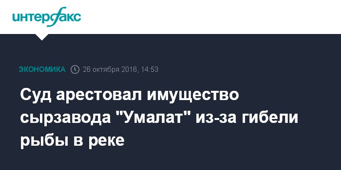 Москва. 26 октября. INTERFAX.RU - Севский районный суд вынес определение об аресте части имущества ЗАО "Умалат" (г. Севск, Брянская область) в рамках рассмотрения дела о компенсации предприятием экологического ущерба в связи с гибелью рыбы в реке Сев. Как отмечается в сообщении на сайте суда, брянский природоохранный прокурор подал иск к компании в защиту неопределенного круга лиц, в котором, в частности, просил суд взыскать с ответчика ущерб, причиненный сбросом в реку вредных веществ, в размере 61,4 млн рублей. В целях обеспечения исковых требований наложен арест на имущество предприятия на эту сумму.