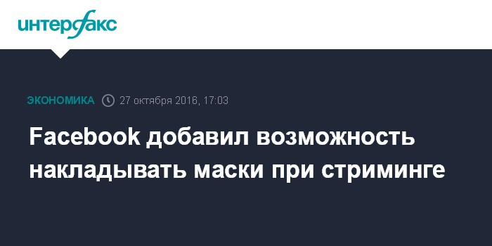 Москва. 27 октября. INTERFAX.RU - Социальная сеть Facebook создала возможность во время видеотрансляций накладывать на лица маски - как в соцсети Snapchat или в приложении MSQRD. Об этом сообщает Mashable.