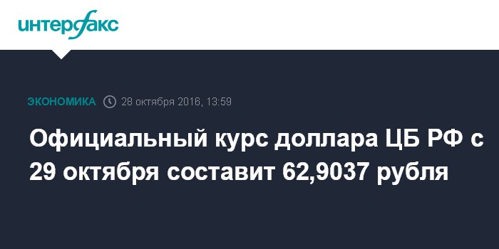 Официальный курс доллара ЦБ РФ с 29 октября составит 62,9037 рубля