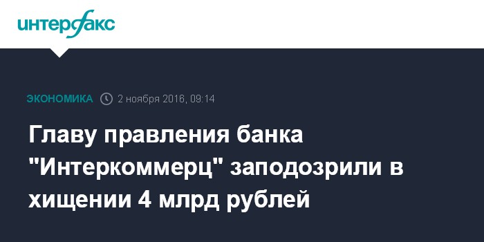 Главу правления банка "Интеркоммерц" заподозрили в хищении 4 млрд рублей