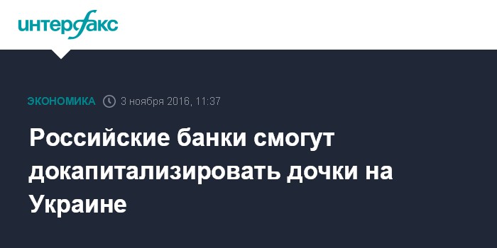 Москва. 3 ноября. INTERFAX.RU - Национальный банк Украины (НБУ) в обновленном порядке применения санкций Совета национальной безопасности и обороны Украины (СНБО) от 16 сентября 2016 года разрешает докапитализацию подсанкционных дочерних банков. Как говорится в сообщении регулятора, соответствующие изменения в постановление правления НБУ вступают в силу с 3 ноября.
