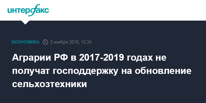 Аграрии РФ в 2017-2019 годах не получат господдержку на обновление сельхозтехники