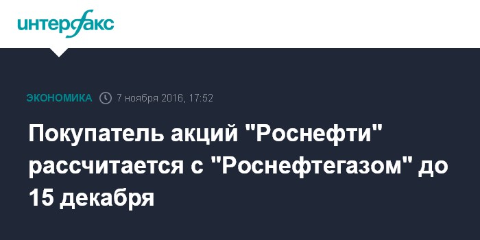 Покупатель акций "Роснефти" рассчитается с "Роснефтегазом" до 15 декабря