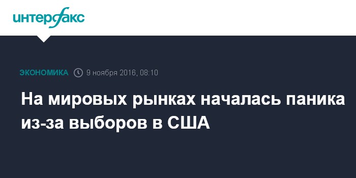 Москва. 9 ноября. INTERFAX.RU - Все более вероятная победа Дональда Трампа на президентских выборах в США вызвала в среду масштабные потрясения на мировых рынках. Инвесторы стали продавать акции, активы, связанные с развивающимися рынками, и уходить в защитные активы - золото, иену, так как победа кандидата-республиканца создает высокую степень неопределенности на многих рынках.