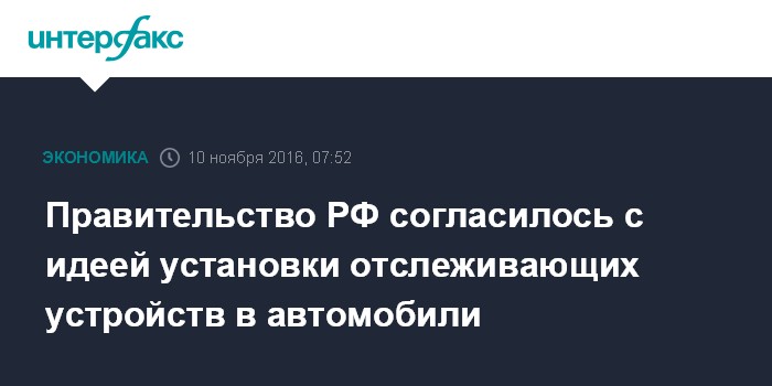 Москва. 10 ноября. INTERFAX.RU - Российское правительство принципиально согласилось с идеей оснастить все автомобили устройствами, которые позволят отслеживать их перемещения и техническое состояние, сообщили в четверг "Известия".