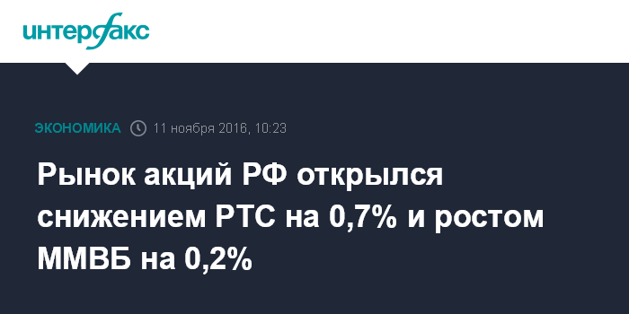 Рынок акций РФ открылся снижением РТС на 0,7% и ростом ММВБ на 0,2%
