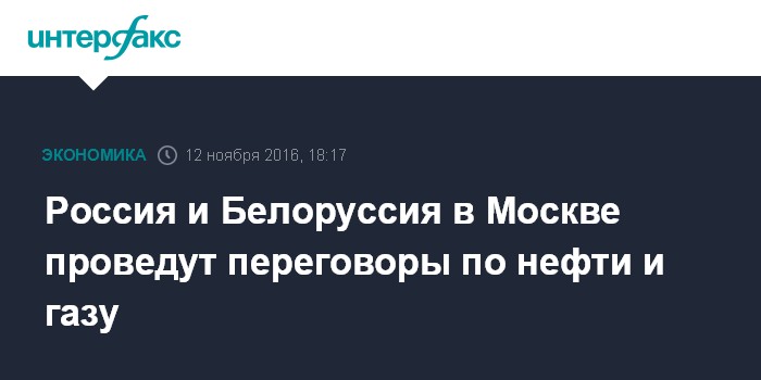 Москва. 12 ноября. INTERFAX.RU - Россия и Белоруссия в Москве проведут переговоры по нефти и газу, сообщил министр энергетики РФ Александр Новак журналистам.