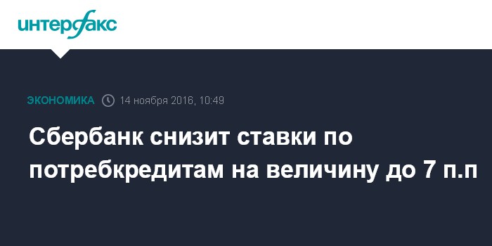 Сбербанк снизит ставки по потребкредитам на величину до 7 п.п