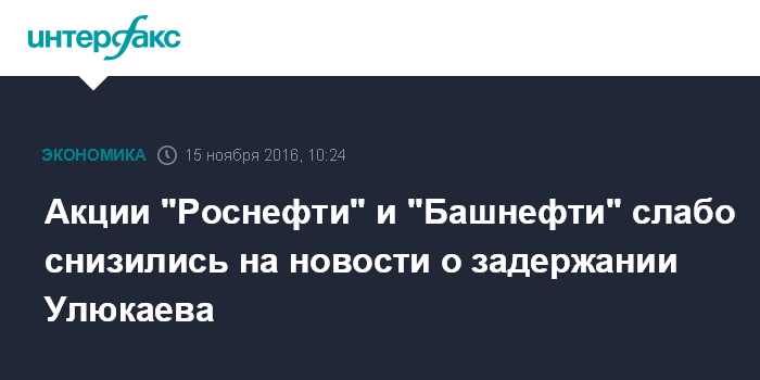Москва. 15 ноября. INTERFAX.RU - Сообщения о задержании министра экономического развития Алексея Улюкаева оказали лишь незначительное негативное влияние на динамику цен акций "Роснефти" и "Башнефти" в первые минуты торгов вторника.