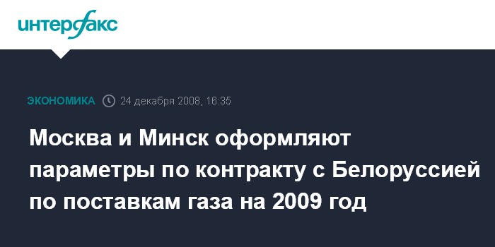 Москва и Минск оформляют параметры по контракту с Белоруссией по поставкам газа на 2009 год