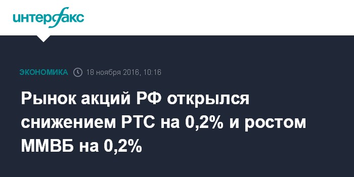 Рынок акций РФ открылся снижением РТС на 0,2% и ростом ММВБ на 0,2%