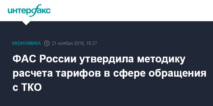 Москва. 21 ноября. INTERFAX.RU - Федеральная антимонопольная служба (ФАС) РФ утвердила методические указания, касающиеся расчета тарифов в области обращения с твердыми коммунальными отходами (ТКО).